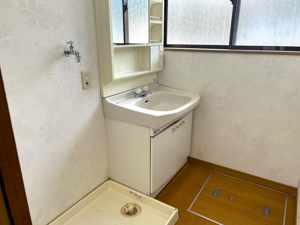 玄関入ってすぐ右側が洗面所、脱衣所、お風呂場になっています。